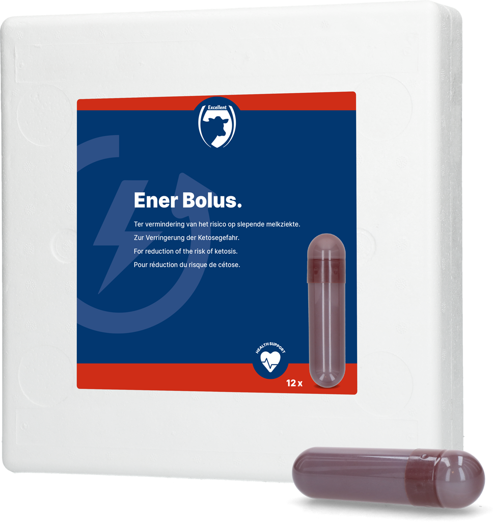 Energiebolus ter vermindering van het risico op slepende melkziekte bij melkvee.