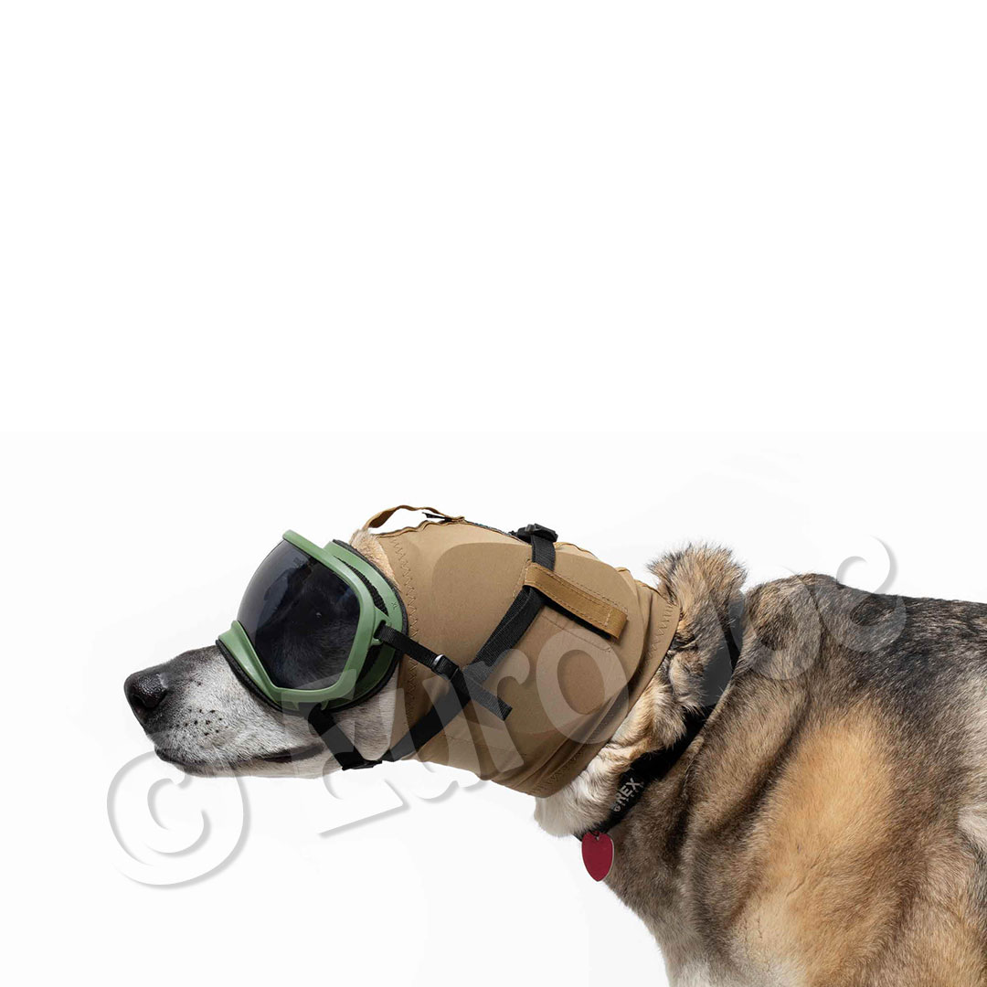 The new Rex Specs Ear Pro by Zeteo Tech hearing protection for dogs is a completely new concept to protect your dog’s ears and sense of hearing. It was developed in the USA for service dogs in the army. In addition to the main function, the noise protection, which is provided by the sewn-in ear capsules, the design also paid attention to functionality and quality. The materials used are of high quality and promise a long product life. Thanks to the hose-like concept, the hearing protection is simply slipped over the dog’s head. This ensures that the hearing protection capsules sit securely on the dog’s ear and protect your dog’s hearing from harmful noise.