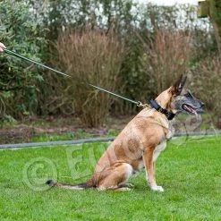 The brass carabiner is very sturdy, so also suitable for the strong four-legged friends.