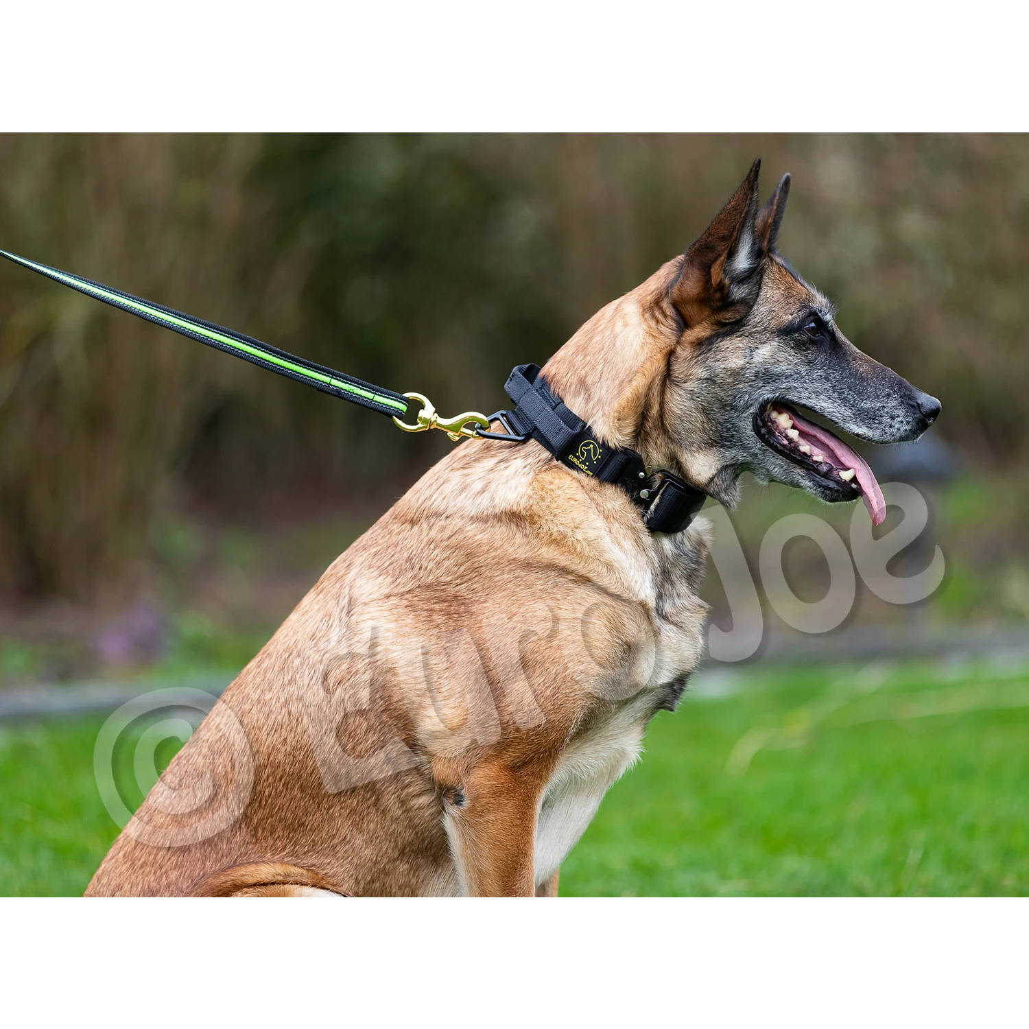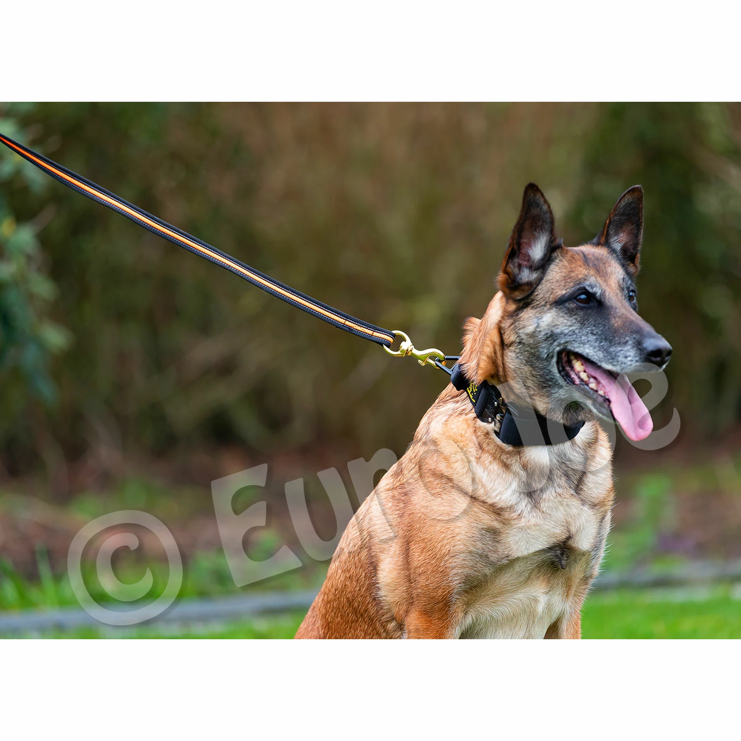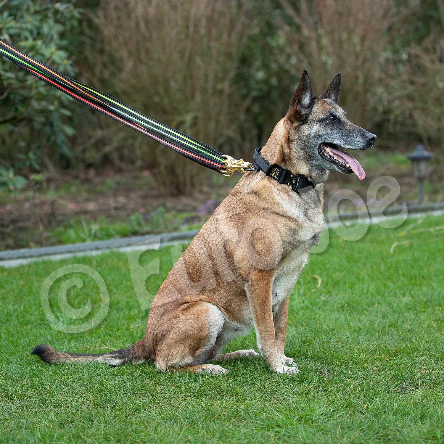 The brass carabiner is very sturdy, so also suitable for the strong four-legged friends.