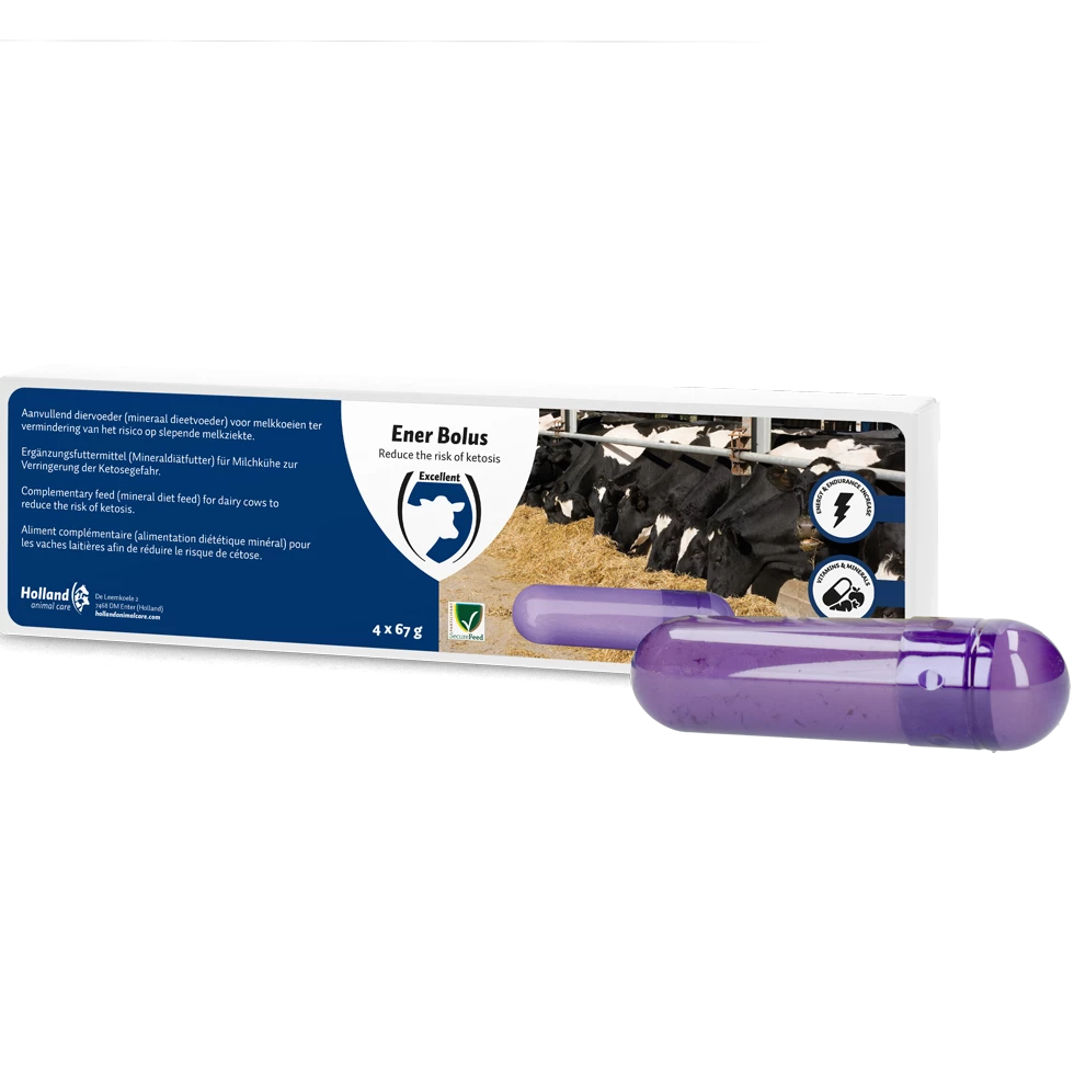 Energiebolus ter vermindering van het risico op slepende melkziekte bij melkvee.