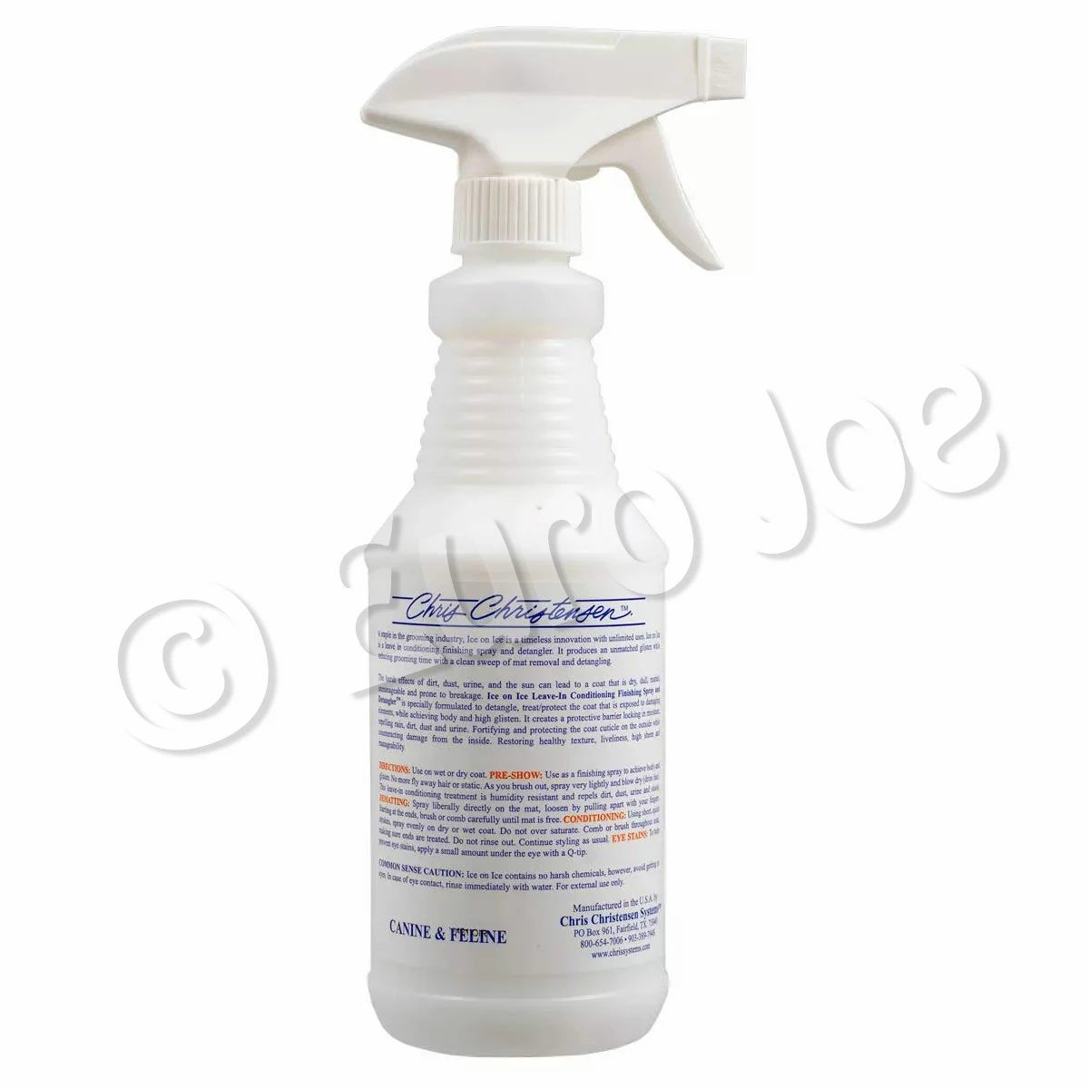 Ice on Ice Detangling and Finishing Spray repels dirt, dust, urine, and pollutants that damage and break the coat. Ice on Ice is water-soluble and can be added to final rinse. Adds elasticity and strength to the coat when brushing and protects the coat from damaging UV rays.
